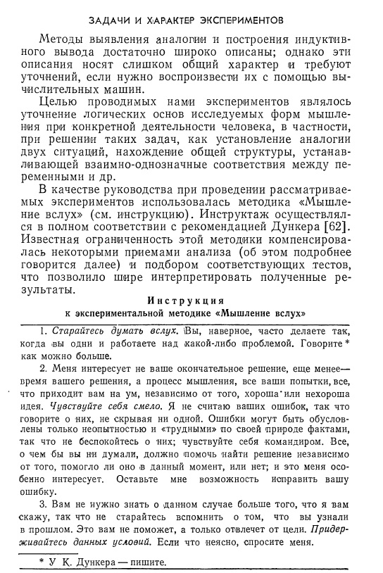 Дункер пользовался в своих экспериментах математическими и практическими задачами, предлагая испытуемым рассуждать вслух во время их решения.